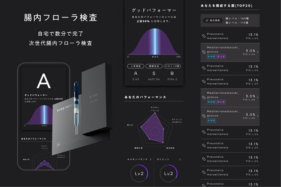 ・相性サポート:腸内フローラ検査・唾液ホルモン検査の結果を踏まえ、吸収のためにおすすめの摂取タイミングの提案をアプリ/ガイドで提示