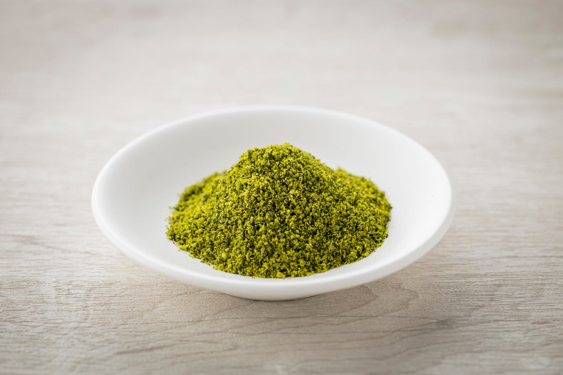 バジルの加工に「蒸す」・「揉みながら乾燥する」といった日本茶の製法を取り入れることで、生のバジルのような香り高さや深い旨みと、ドライバジルの便利さの両立を実現した、ハウス食品オリジナルのドライバジルです。通常のドライバジルよりもバジル本来の色あいや甘い香り、特有の深い旨みを引き出すことができます。