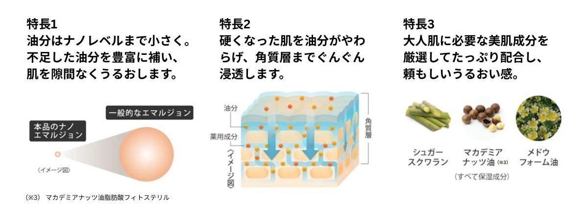 (※2)シュガースクワラン、マカデミアナッツ油脂肪酸フィトステリル、メドウフォーム油(すべて保湿成分)