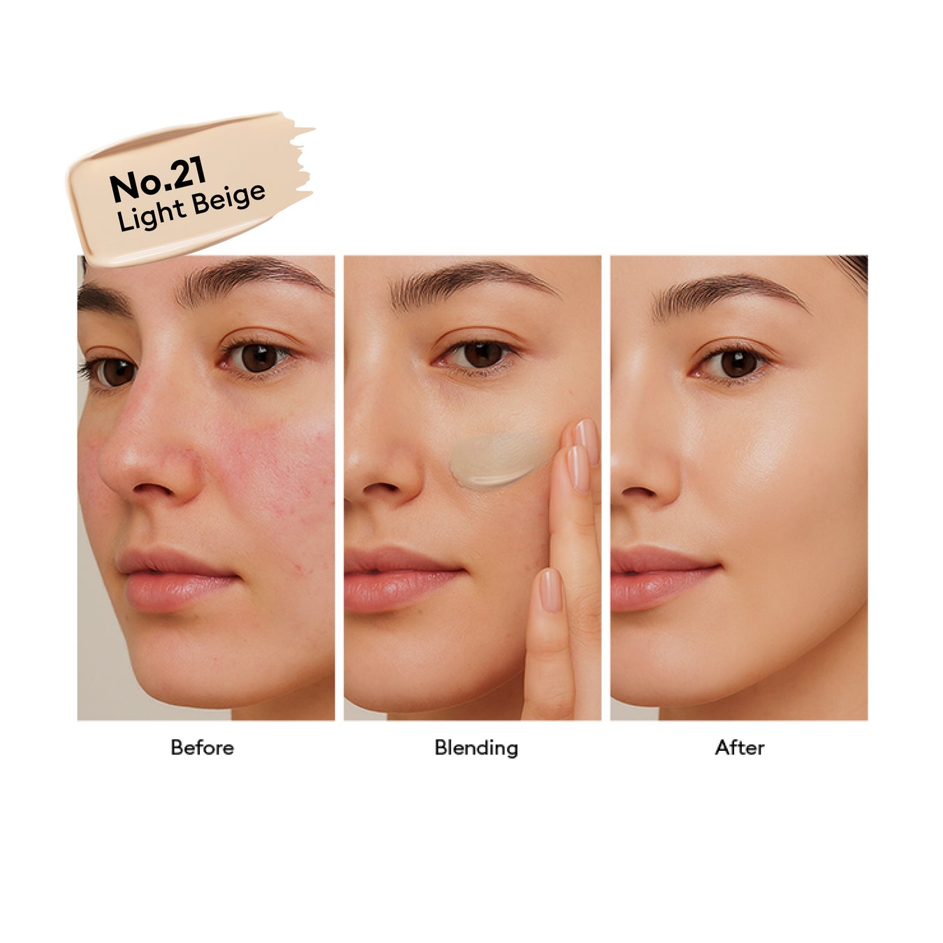 赤みをカバーするミュートカラーで、なじませるほどに肌に溶け込む自然な発色です。