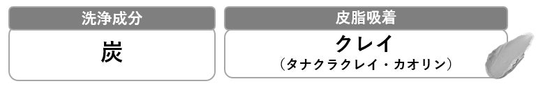 ※1 炭(洗浄) ※2 タナクラクレイ、カオリン(皮脂吸着)
