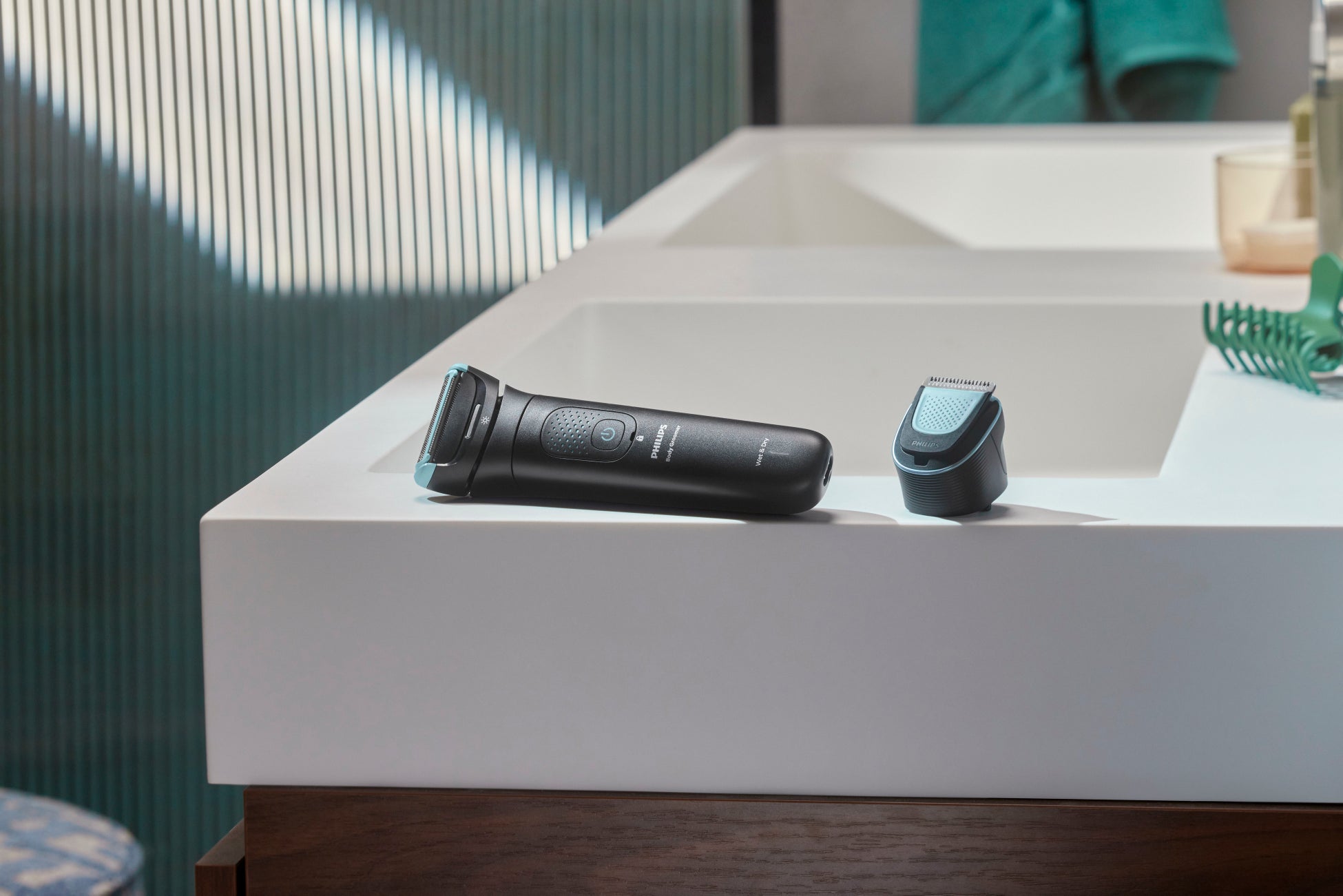 「7000シリーズ」は、シェービング用のシェービングヘッドと、スタイリング用のトリミングヘッドのデュアルヘッドシステムを搭載し、部位や用途に合わせて使い分けられるため、幅広いグルーミングニーズに応えます。さらに、本体にあるインテグレートライトが身体を照らすため、剃りにくい部位や剃り残しが出やすい部位も正確にグルーミングすることが可能です。