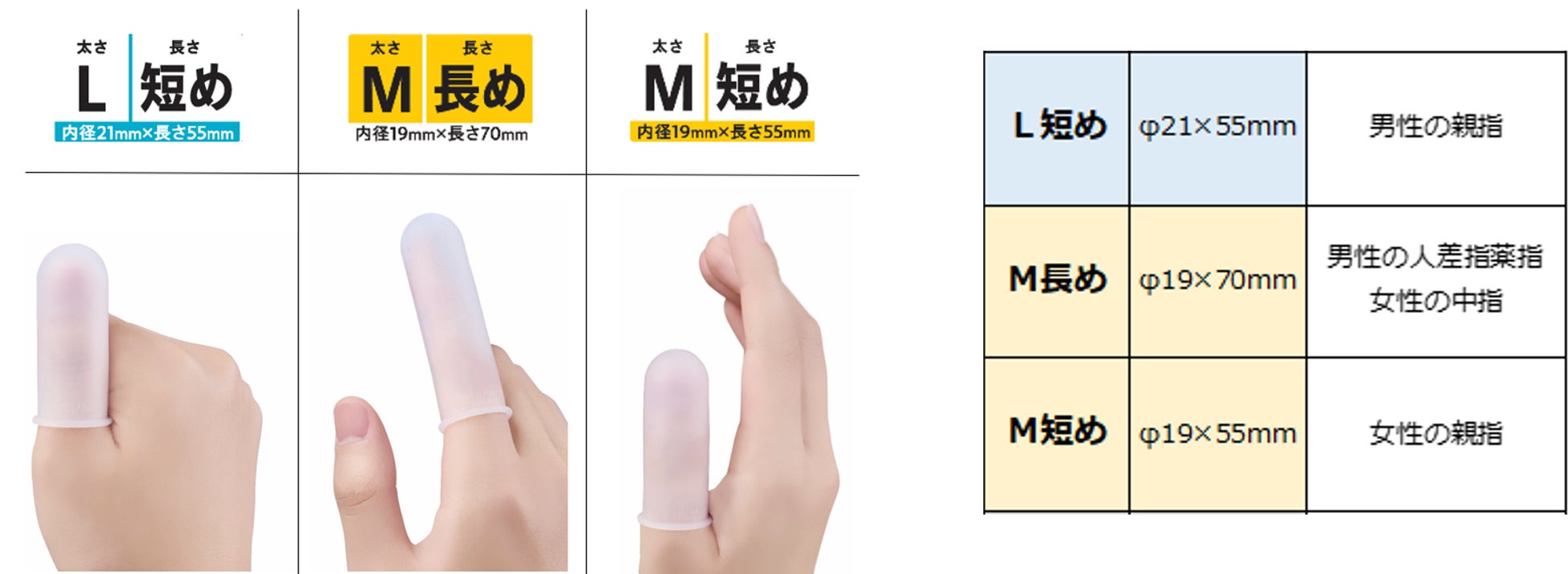 それらの不満点を解決すべく、今回新商品として、ゴム臭くないシリコーンタイプの指サックを販売いたします。
