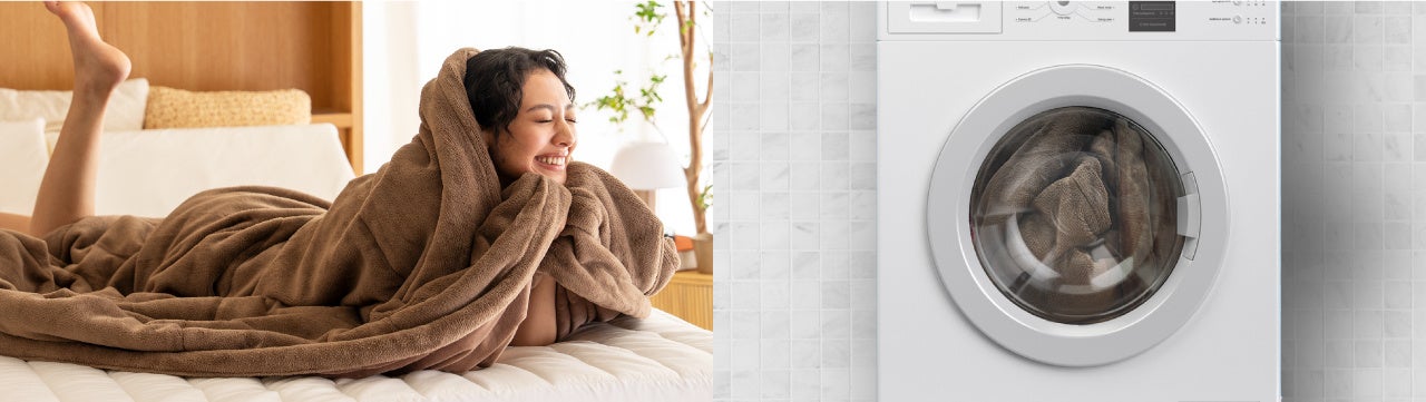 いつまでも包まっていたい極上の肌ざわり。カシミヤブラン面は、まさにカシミヤ素材を超えた滑らかな極上風合い、コットンブラン面は綿素材でさらっとした風合いです。家庭洗濯機での洗濯はもちろん、抗菌よりも強い制菌効果で菌の増殖を防ぎ、毎日清潔にご使用いただけます。※シングルサイズ1 枚で、7kg容量以上の洗濯機を推奨。洗濯機の取扱説明書をご確認ください。