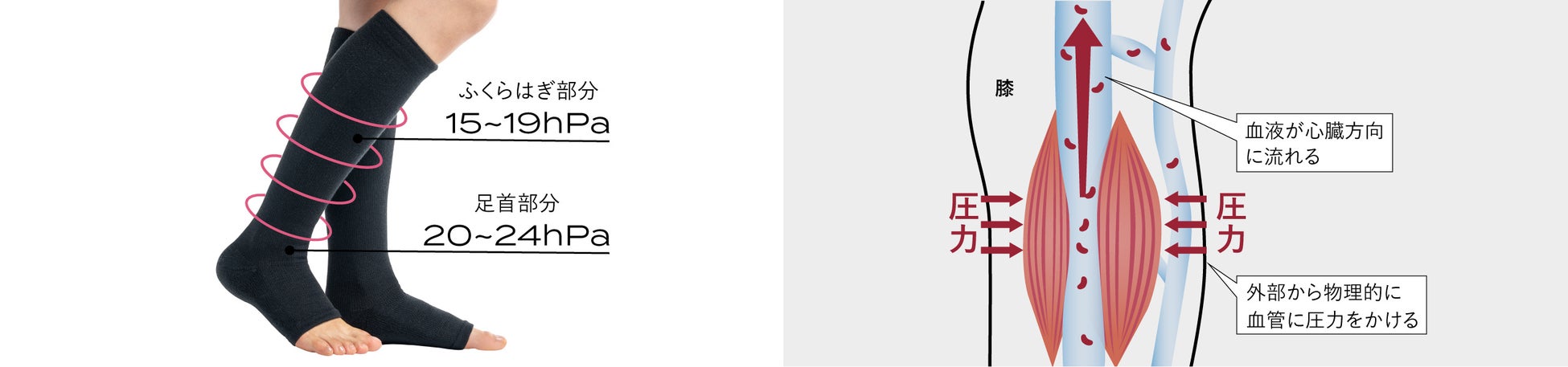メディックリカバリーファイバーの遠赤外線輻射熱の効果で、ソックスを履いて20分後のふくらはぎの表面温度が0.6℃上昇することが確認されました。日々の睡眠時間を活用して着圧×温熱の2つの効果で、毎日酷使する足の疲労回復をサポートします。