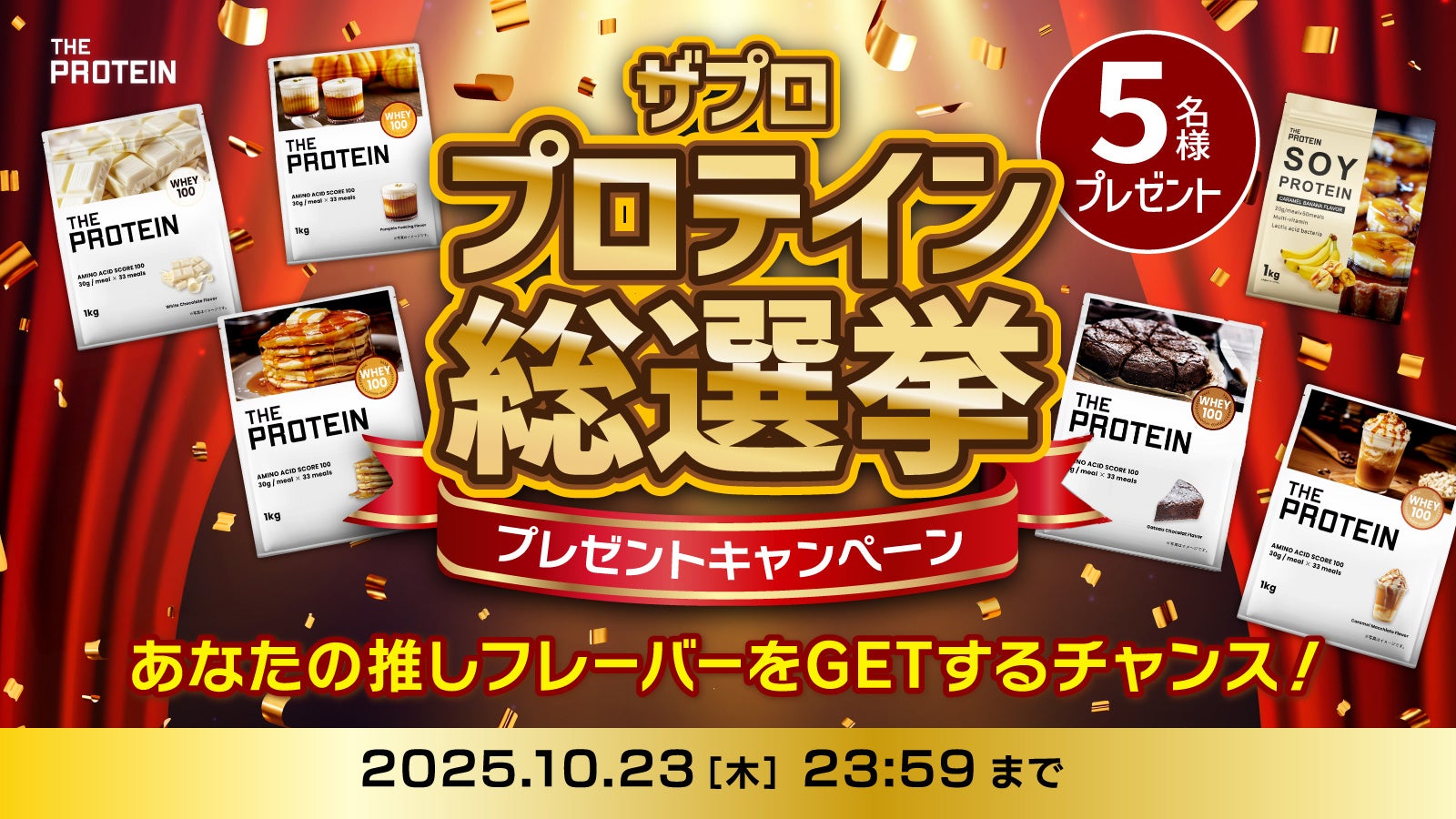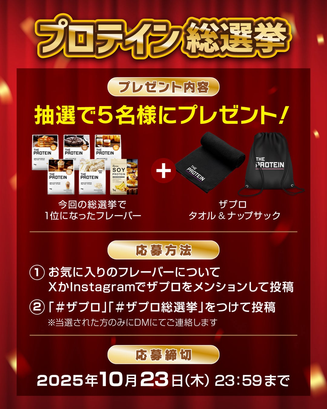 人気投票でNo.1に輝いたフレーバーは、抽選で5名様にザプロのスペシャルグッズとともにプレゼントいたします。期間限定の特別企画、ぜひお気に入りのフレーバーを見つけてキャンペーンにご参加ください!