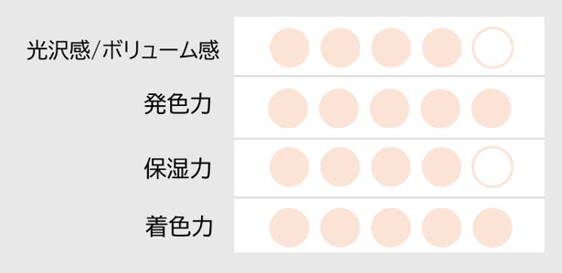 ベタつきのないなめらかなテクスチャーで、ナチュラルなのに印象的な唇に。