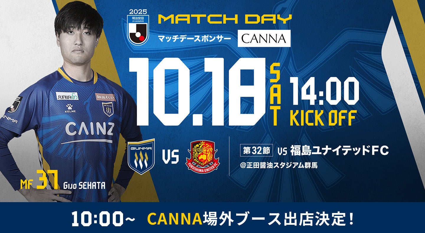 「歳をとるって進化だ」をコンセプトにCBDスキンケアCANNA(カンナ)を展開する株式会社アッツ(所在地:大阪市北区、代表取締役:山崎 晶久)は、2025年10月18日(土) ザスパ群馬vs福島ユナイテッドFCで初の冠試合『CANNAスペシャルマッチ』を開催いたします。