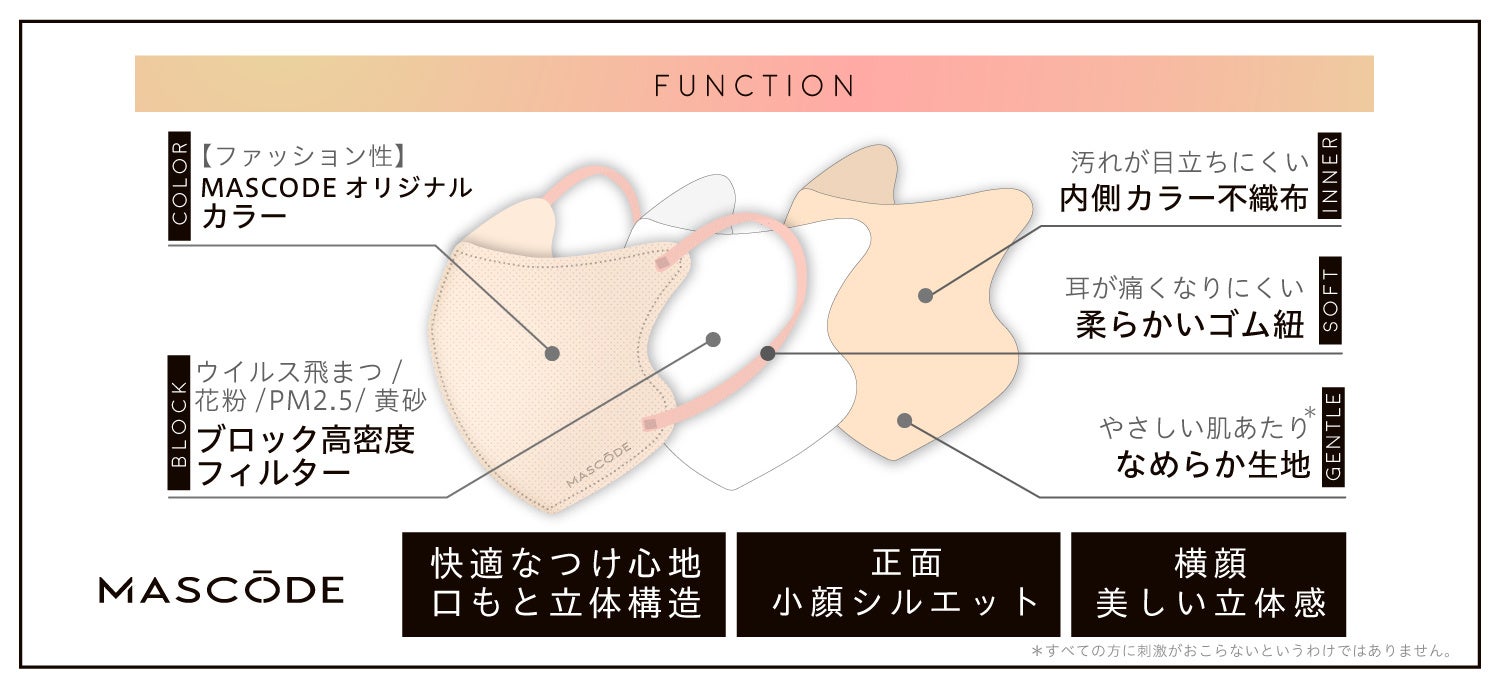 ファッション性と機能性を両立させた「MASCODE(マスコード)」は、「理想の『美しさ』を表現できるドレスコードブランド」として、TPOや服装、その日の気分、なりたい印象に合わせて選べる衛生マスクとアイライナーを取り扱っているブランドです。