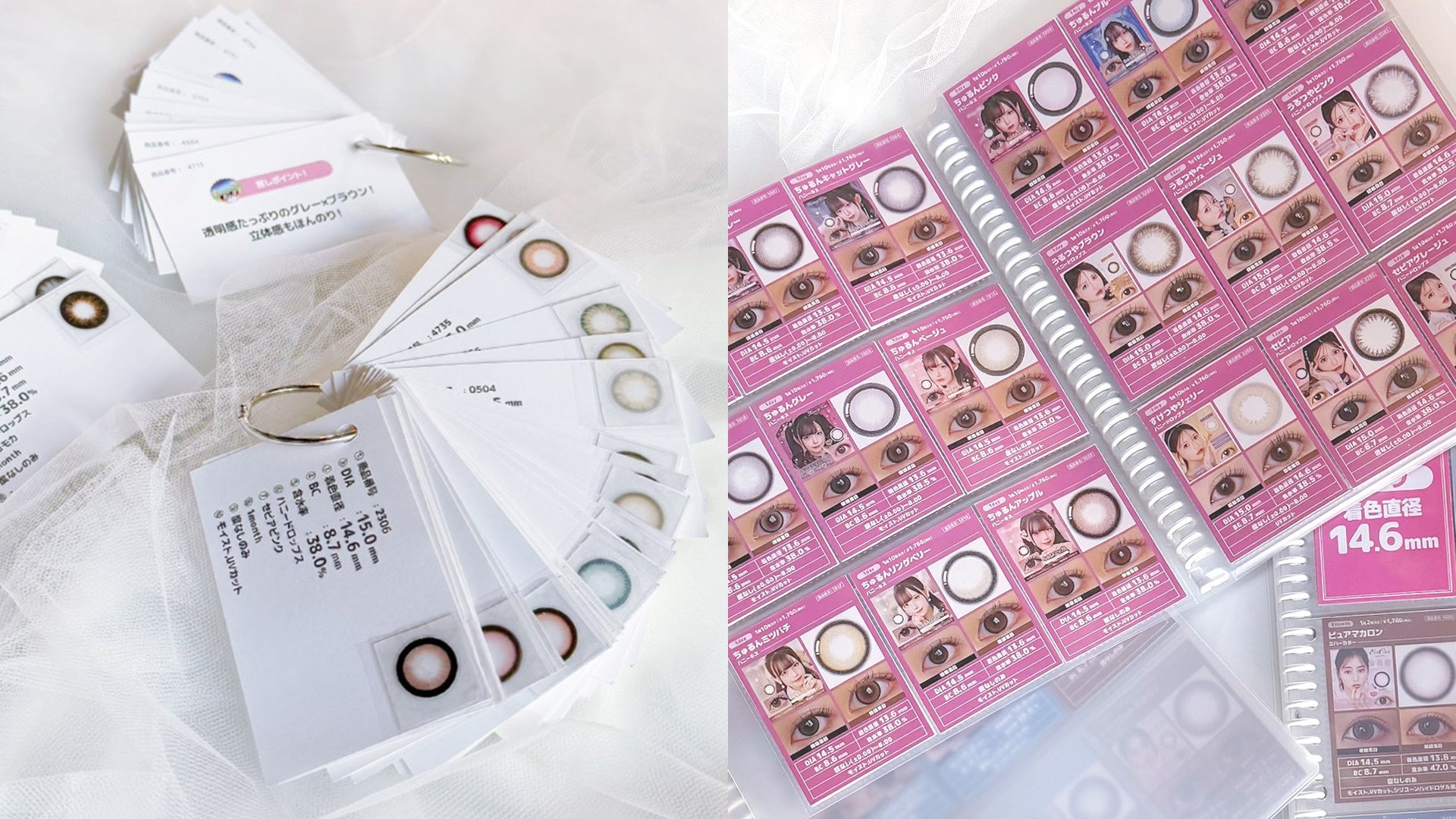 スタッフ手作りの「カラコン単語帳」や「カラコン着画図鑑」をご用意しております。