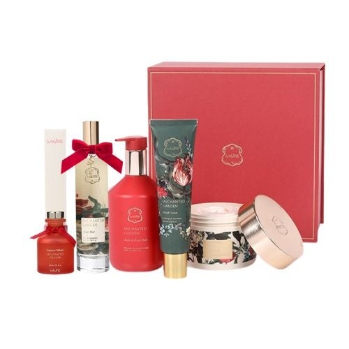 「Enchanted Garden(エンチャンテッドガーデン)」は、まるで魔法の庭園に迷い込んだかのような、ラグジュアリーな世界観を表現したコレクションです。甘くやわらかなホワイトアンバーと花々の香りに包まれ、乾燥が気になる冬の肌をしっとりなめらかに整えます。