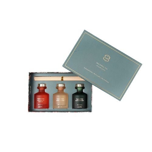 〈エンチャンテッドガーデン〉〈オリーブババス〉〈ウォームバニラ〉の3種を詰め合わせ。気分やシーンに合わせて香りを楽しめ、ホリデーギフトにも映える限定仕様です。