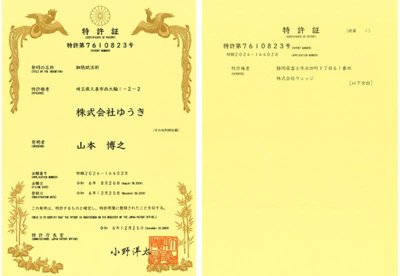 株式会社ゆうき(埼玉県久喜市)は、株式会社ウェッジ(静岡県富士市)と共同で、『コアフォースNMN』の基幹成分である『ゆうきセラミックス』について特許(特許第7610823号)を取得しました。