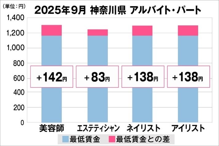 2025年9月時点で『美プロ』に掲載されている「神奈川県」の「美容師・エステティシャン・ネイリスト・アイリスト」求人における「正社員」「アルバイト・パート」の給料を抽出。