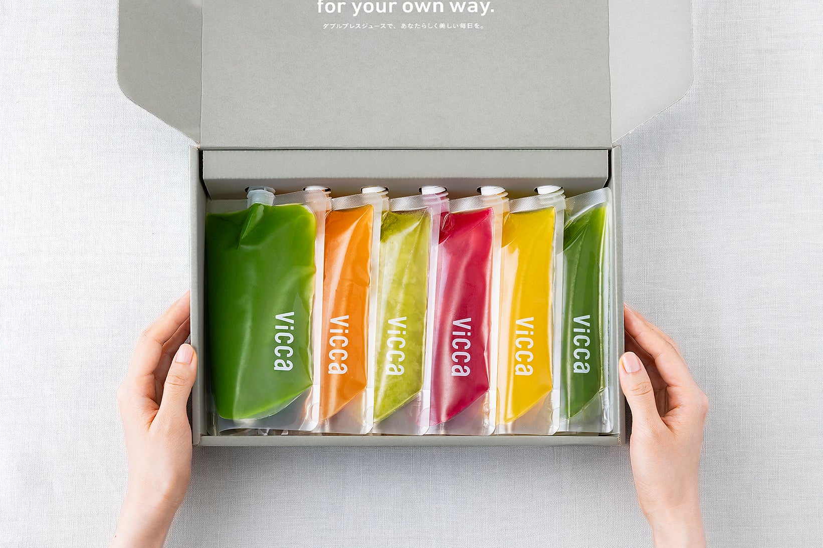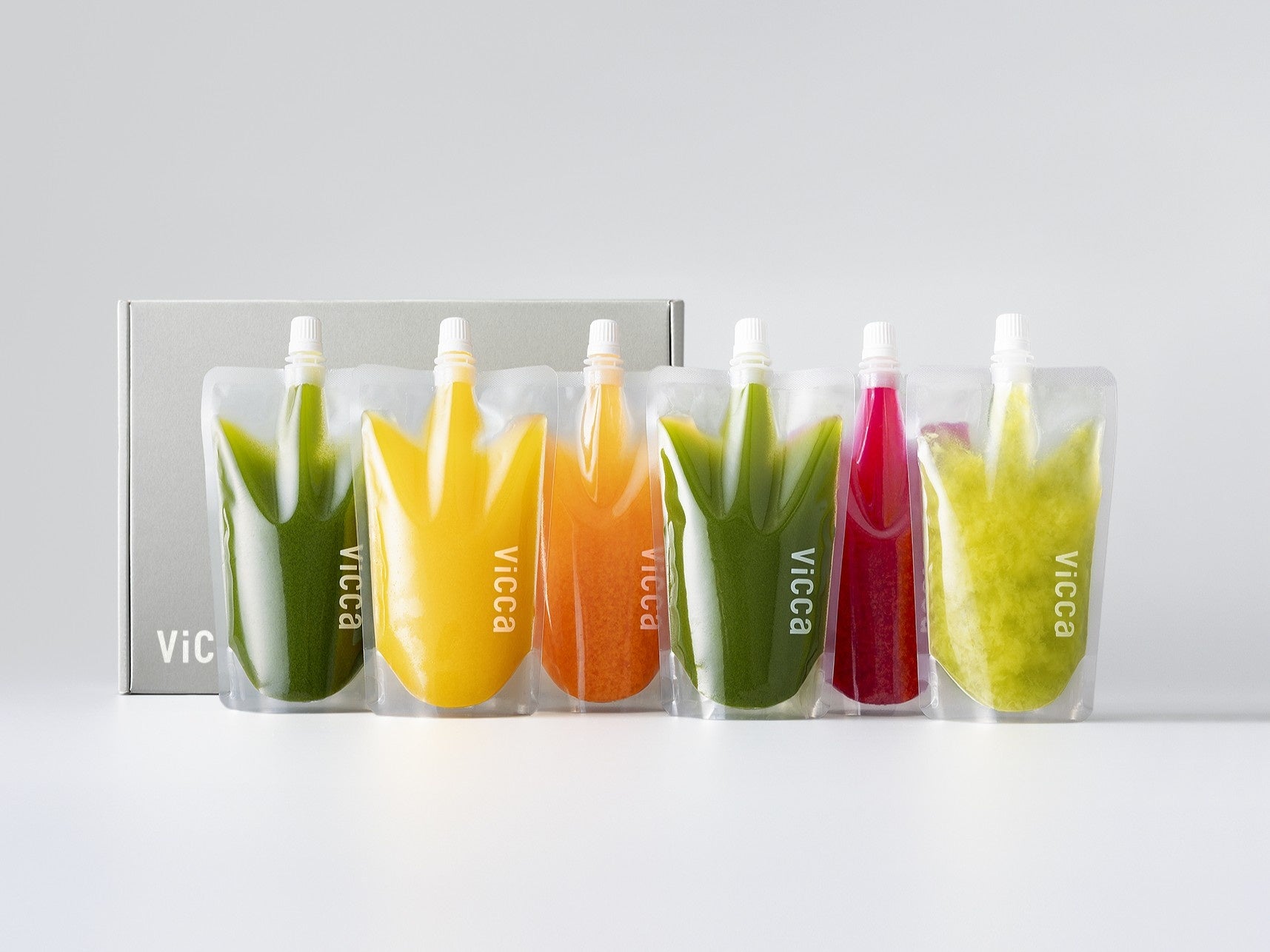 『Vicca』は、当社直営のフルーツジュースバー&デリ「FRUITS IN LIFE 東京ミッドタウン店」の考え方をベースに誕生した、“ダブルプレスジュース”ブランドです。1本で1日に必要なフルーツ約200gを手軽に摂取できるジュースを、冷蔵便による定期配送サービスでご自宅までお届けします。