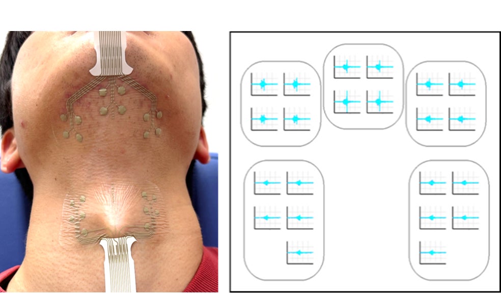 NOK株式会社(本社:東京都港区芝大門、代表取締役 社長執行役員 グループCEO:鶴 正雄)のグループ会社であるメクテック株式会社(本社:東京都港区芝大門、代表取締役 社長執行役員 CEO:伊藤 太郎、以下「メクテック」)は、首周辺に貼るだけで微弱な生体電気信号(表面筋電位信号)を検出し、嚥下時の筋肉の動きを非侵襲的にとらえる薄膜センサーシート「嚥下機能評価用伸縮FPC(フレキシブルプリント基板)」を岩手大学 理工学部 理工学科 機械知能航空コース 生体工学研究室(佐々木誠教授、以下「岩手大学生体工学研究室」)と共同で開発いたしました。岩手大学生体工学研究室では、本製品に筋肉の動きを解析する独自技術(特許第7533919号)を実装し、さらに、超音波エコー装置を組み合わせることで、嚥下関連器官と食塊の動きを同時にとらえ、誤嚥・窒息リスクや嚥下機能の低下を評価できる新しい手法を開発しました。