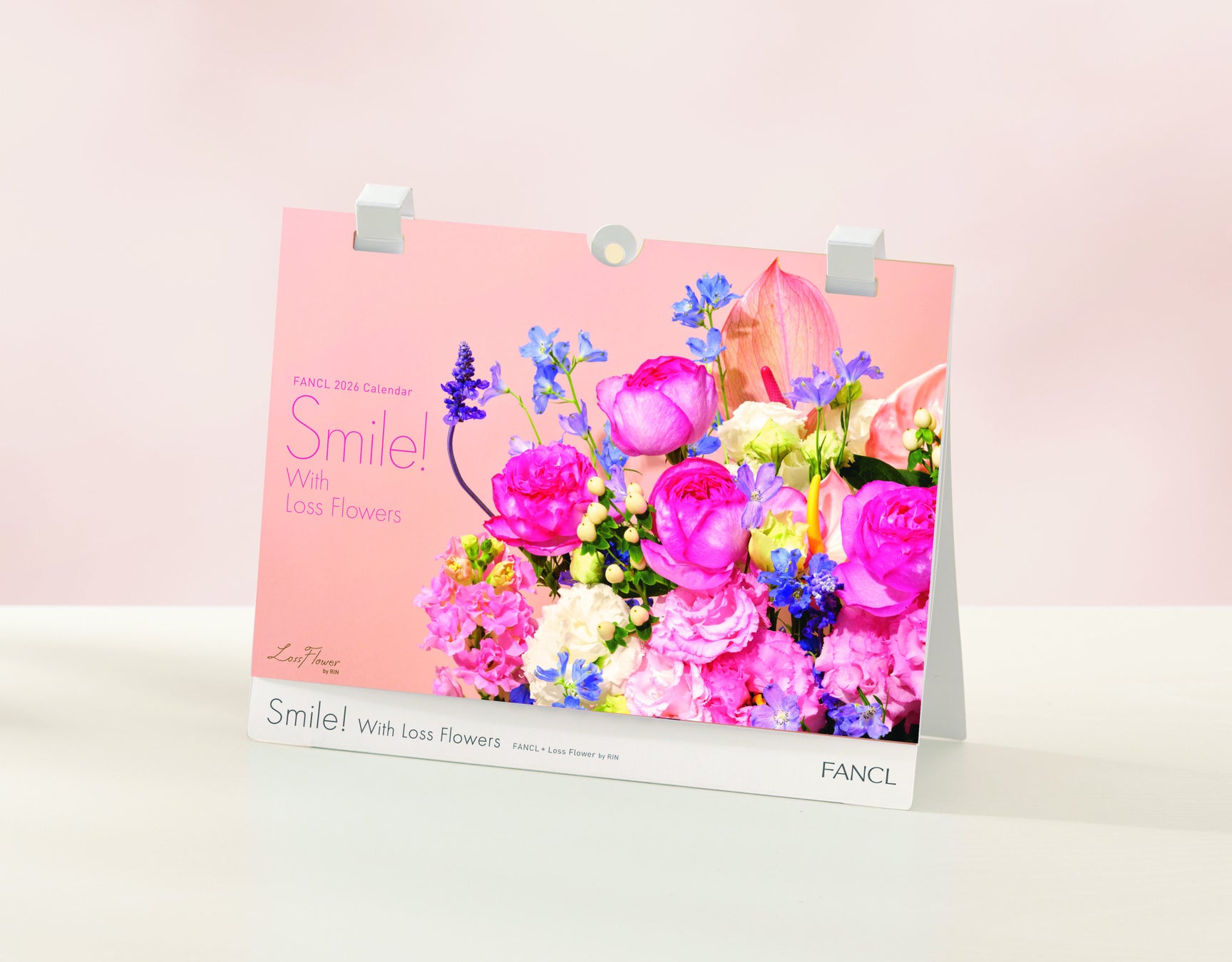 製品1点以上ご購入で、直営店舗限定の「ファンケルオリジナルカレンダー2026」をプレゼントします。お客様アンケート(2025年5月実施)で1番人気のデザインで表紙を彩っています。ロスフラワーⓇの生き生きとした美しさが、笑顔や癒しをお届けできるようなデザインです。