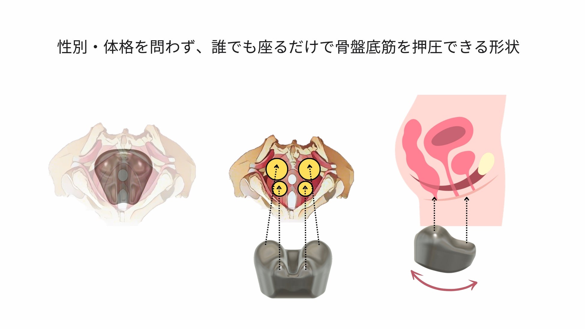 1. 性別、年齢、体格を問わず、骨盤底筋を押圧できる形状