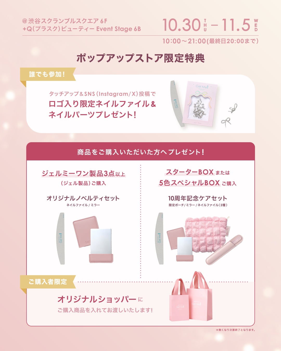 POPUP期間中にジェルミー製品3点以上(ジェル製品) 購入で、ロゴ入り限定ネイルファイルとオリジナルミラーをプレゼント!