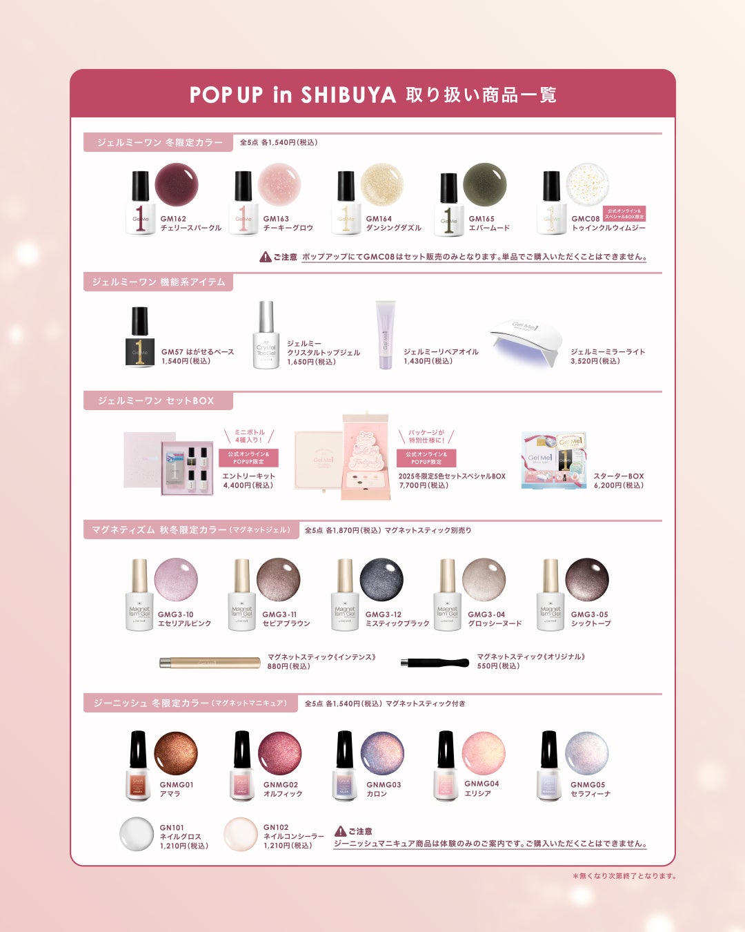 ※『ジーニッシュマニキュア』商品は本イベントでの販売はございません。タッチアップのみの実施となります。