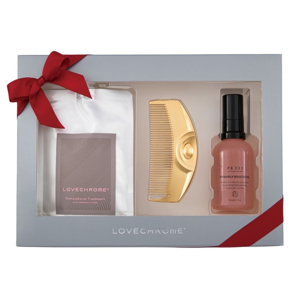 今回登場するギフトBOXは、ブランドを象徴するヘアコーム「ツキ(TSUKI)」と、コームとの相性を考えて開発された美容液トリートメントや、全身にマルチ使いができるヘアオイルがセットに。赤リボンをあしらったギフトBOXは、ホリデーシーズンを華やかに彩ります。