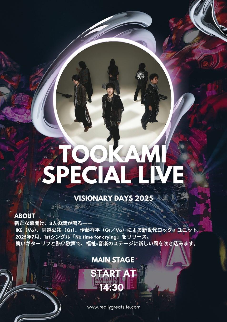 本イベントでは、福祉業界に強い関心を持ち、ビジョナリーの理念に共感するアーティストや特別なゲストを迎え、一日限りの特別なステージをお届けいたします。