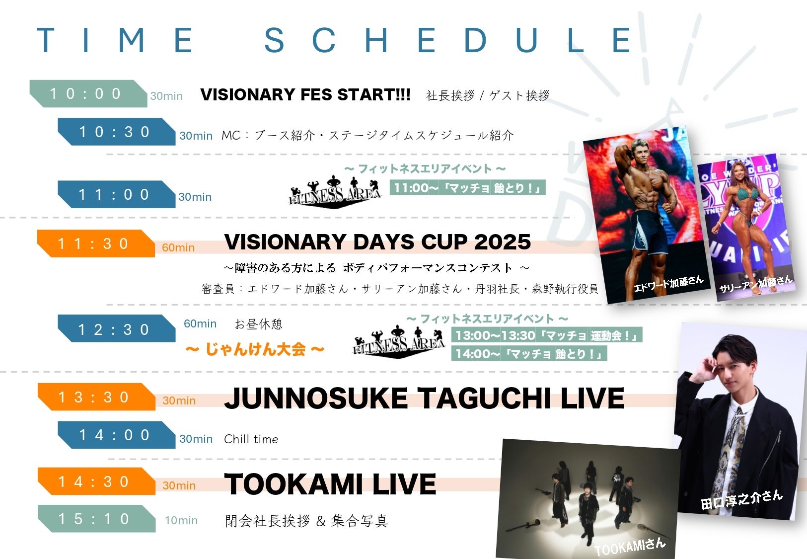 また、昨年初開催となった障害のある方のフィットネス大会『VISIONARY DAYS CUP2025』も開催が決定。大注目のステージプログラム・タイムテーブルを発表いたします。