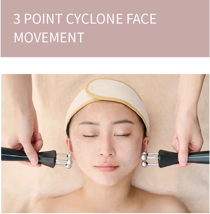 フェイシャルでは、うねるような体感とともに、表層・中層・深層の表情筋をまんべんなく動かします。さらにマイクロカレントにより、肌のコンディションまできめ細やかにケアしていきます。