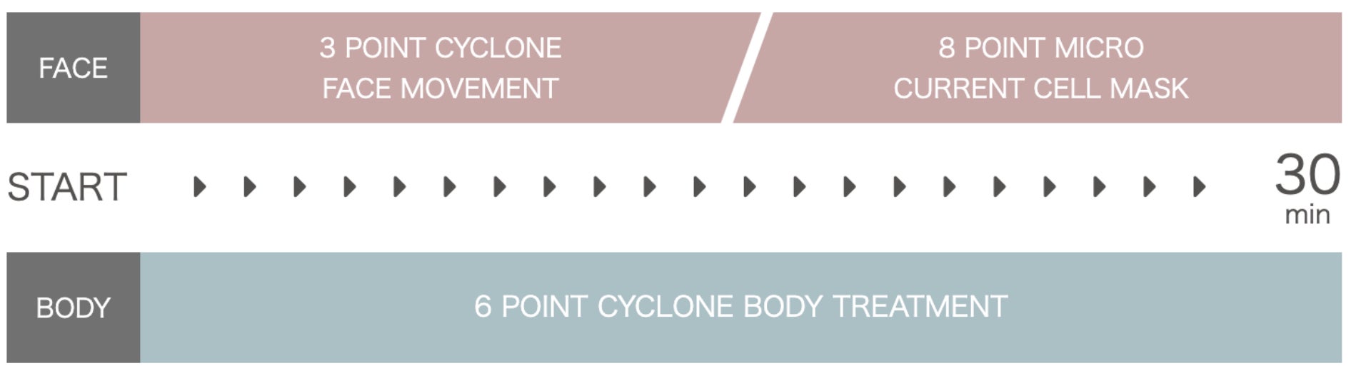FACEとBODYの同時ケアにより、30分で全身のトリートメントが完了。