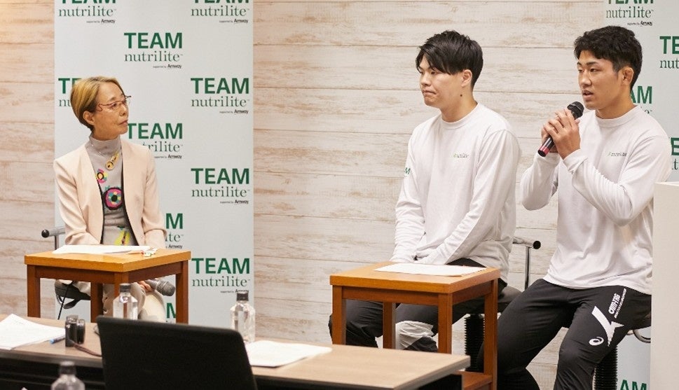両選手からは、競技によって異なる、日々のトレーニングや食事の工夫、栄養補給の方法、そして競技生活を支える「信頼できる栄養補助食品」の大切さについて語られました。今後の世界大会や国際舞台での活躍を見据えた力強い意気込みも発表されました。