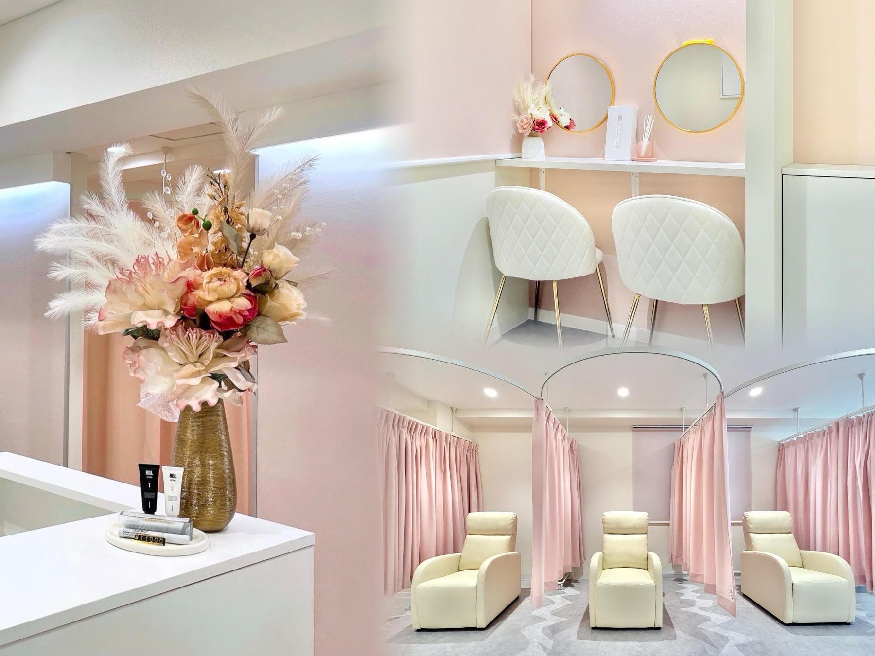ピンクと白を基調とした明るく清潔な店内で、リラックスして施術を受けていただけます。カーテンで仕切った個室風空間で、ふわふわのリクライニングチェアを完備。「また来たい!」と思っていただけるよう、清潔で快適な空間づくりを徹底しています。女性専用・完全予約制で、周囲を気にせずリラックスした時間をお過ごしいただけます。