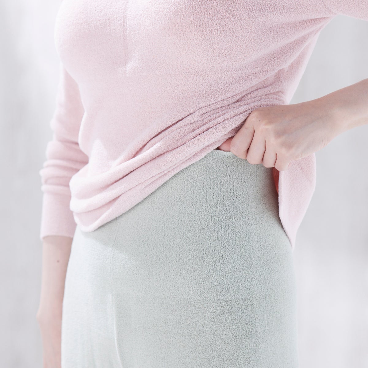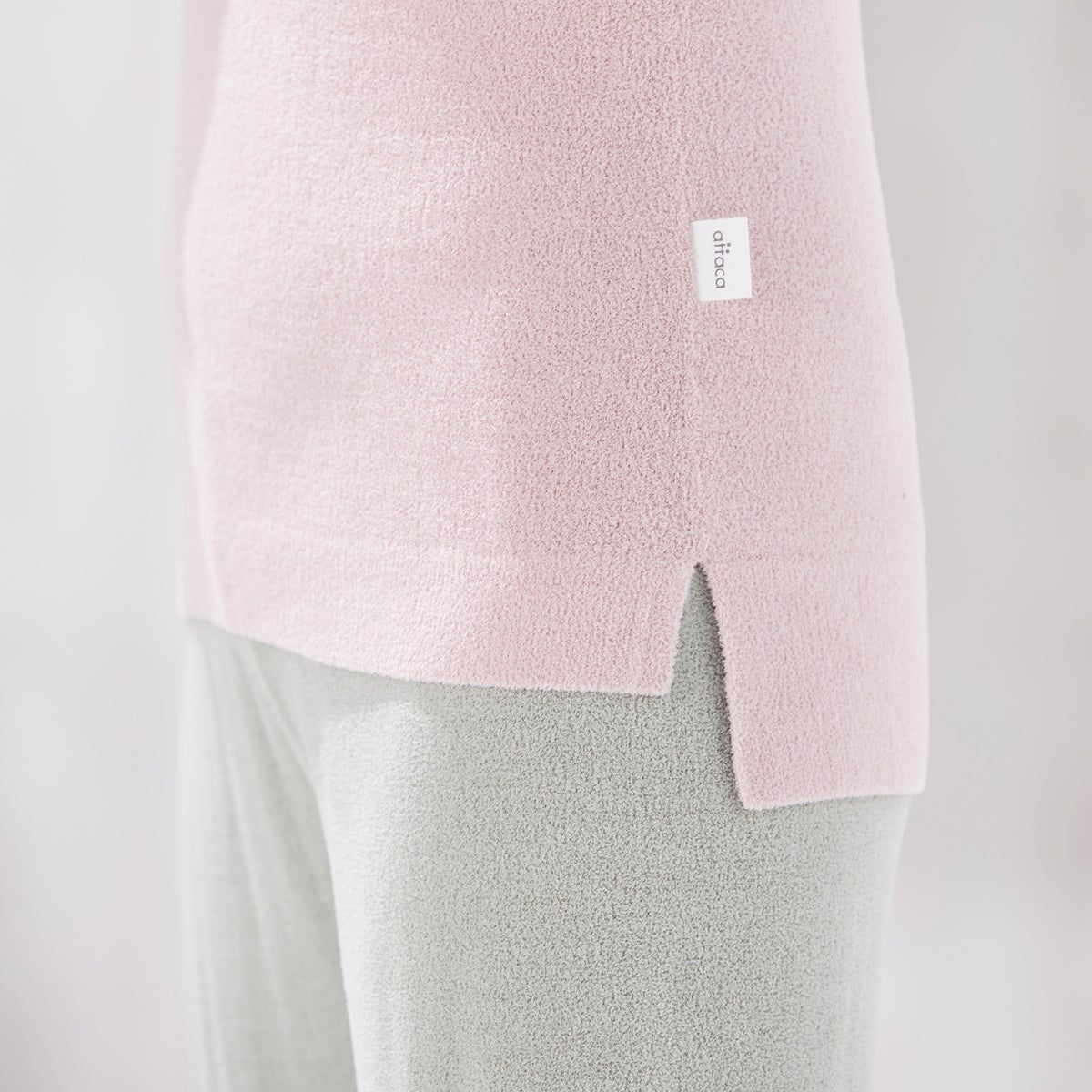 「アッタカ」の素材は、温かくなめらかな肌触りが特長で、心地よい着用感を実現しています。ニットならではの優れた伸縮性に加え、編み続きによる縫い代のない仕様により、肌へのあたりが少なく、フラットで快適な着心地を感じていただけます。