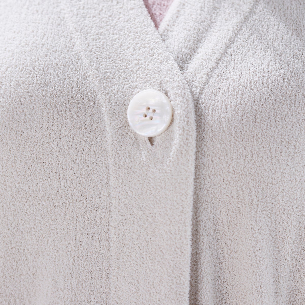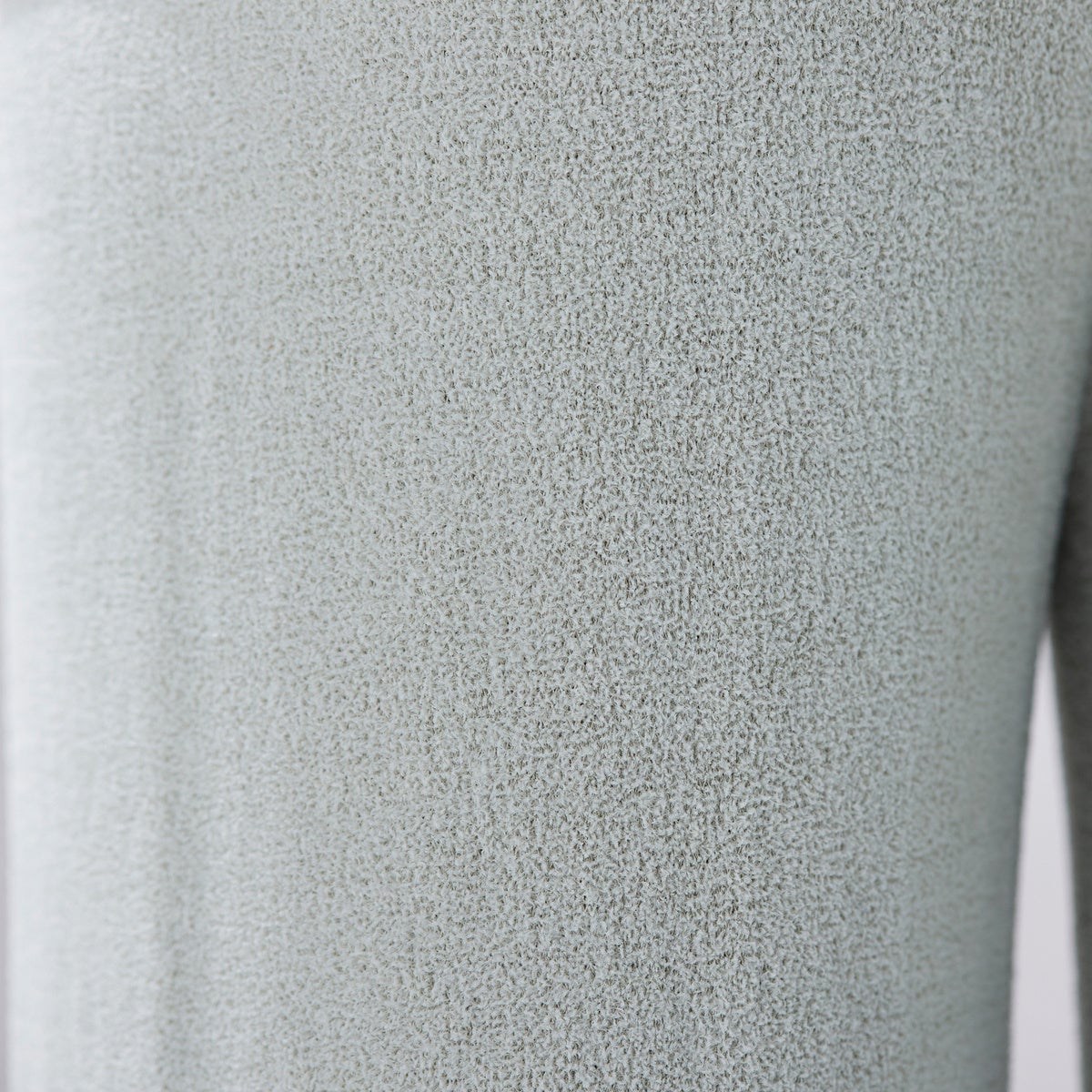 羽毛のような形状を持つ独自開発の糸(セラミックス練り込み糸)を使用しており、軽やかで柔らかな肌触りと、優れた保温性を実現しています。まるで羽毛に包まれるような温もりを感じていただける素材です。