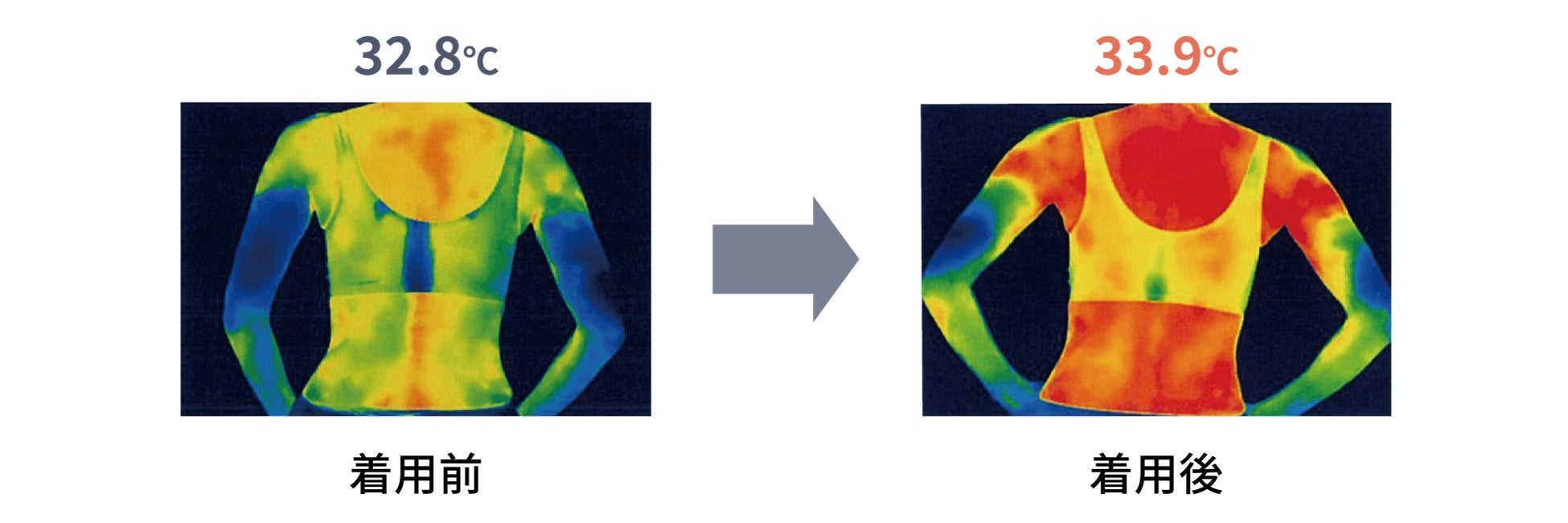 また、お腹まわりを冷やさないように設計された腹巻付きニットウェアを主力商品として展開しており、独自に開発したセラミックス練り込み糸を使用しています。