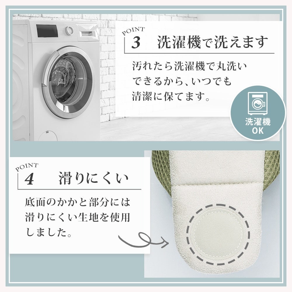 メッシュ生地で乾きやすく、柔らかいフォーム構造だから洗ってすぐに絞れます。