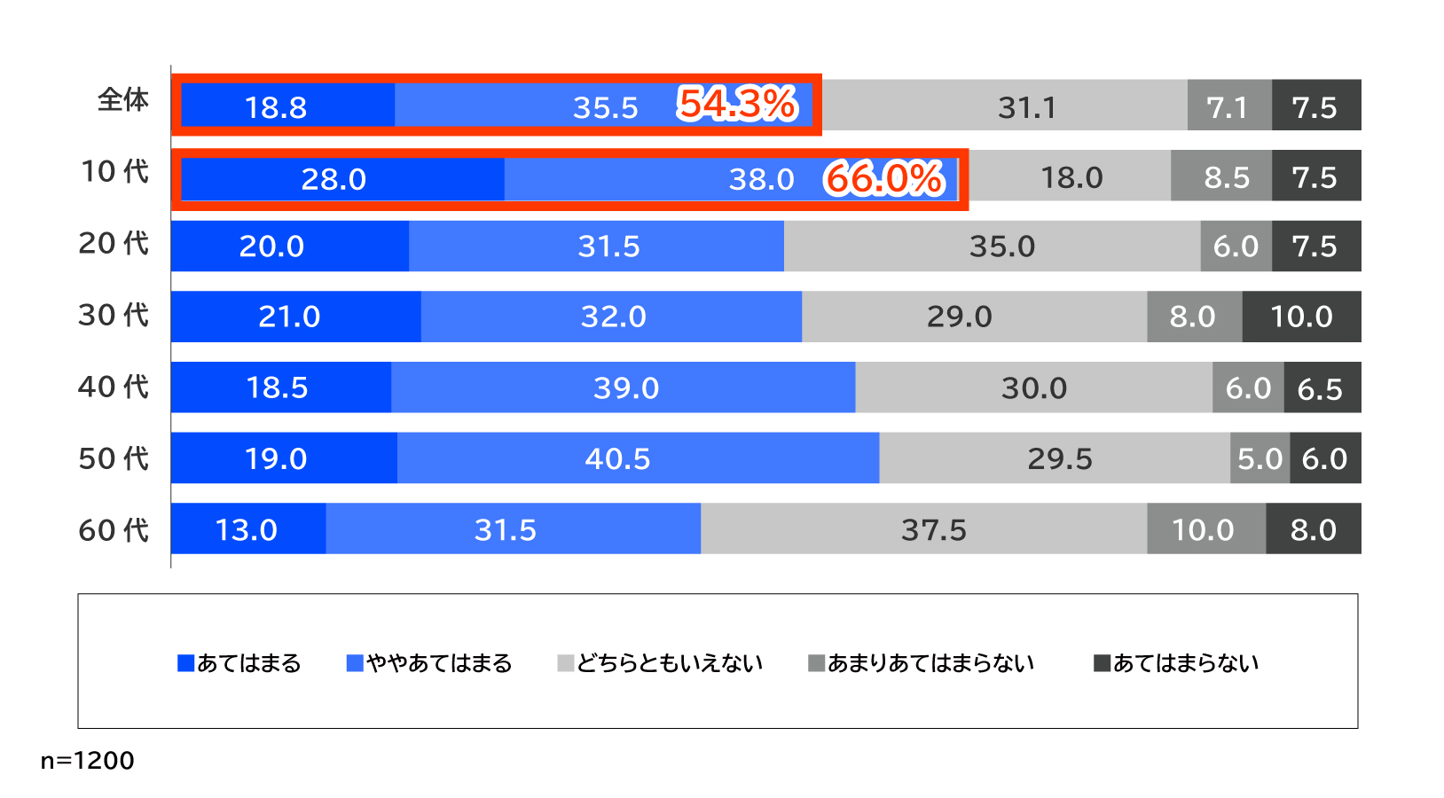 ・「性ホルモンとは何か」「性ホルモンバランスが乱れると何が起こるか」について知ったり学んだりする機会を増やすべきだと考える人は全体の54.3%。10代は66.0%で、年代別で最も高い。【図表9】
