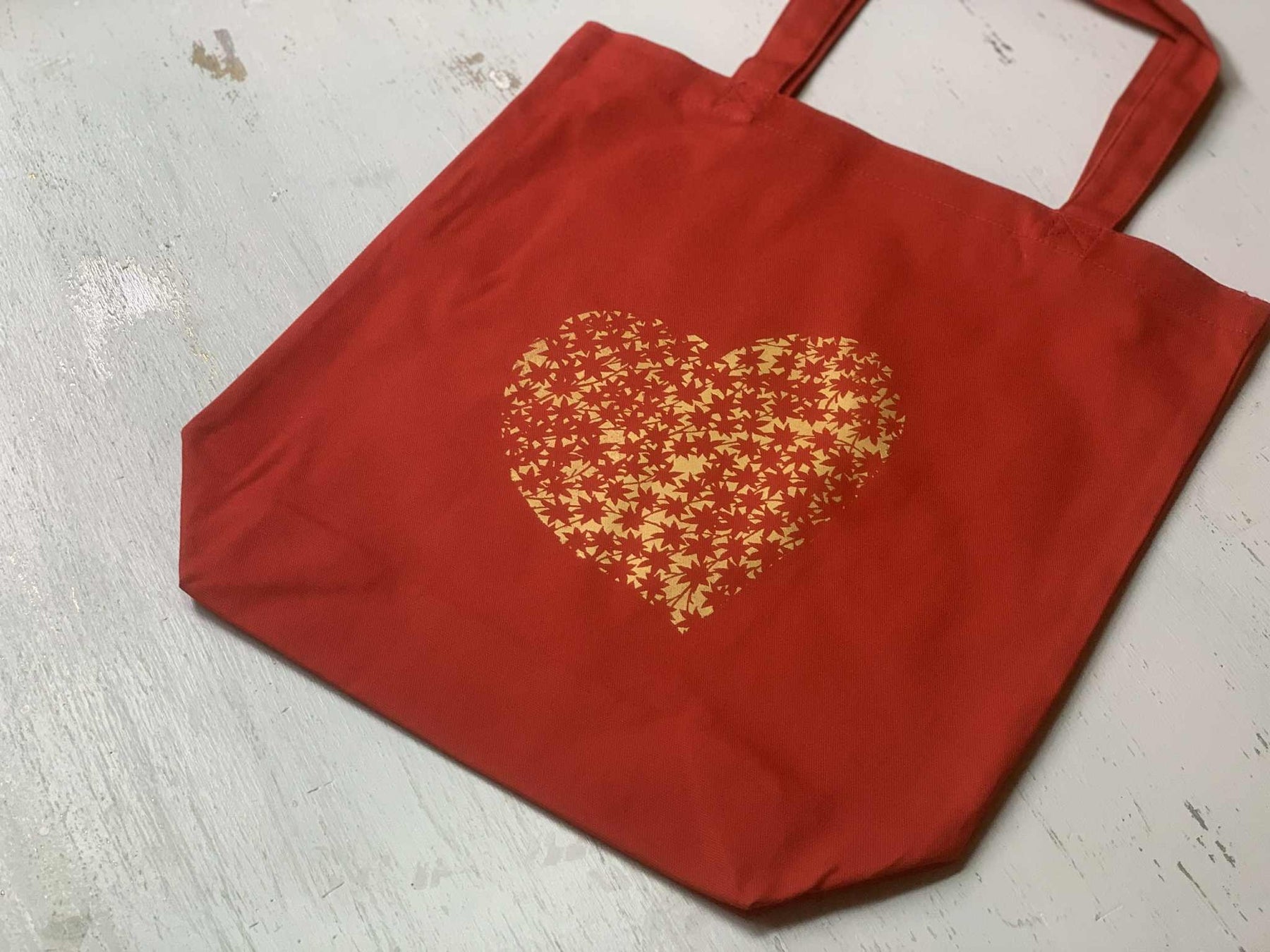 ハートのモチーフに、これからの秋にぴったりの紅葉柄をあしらいました。