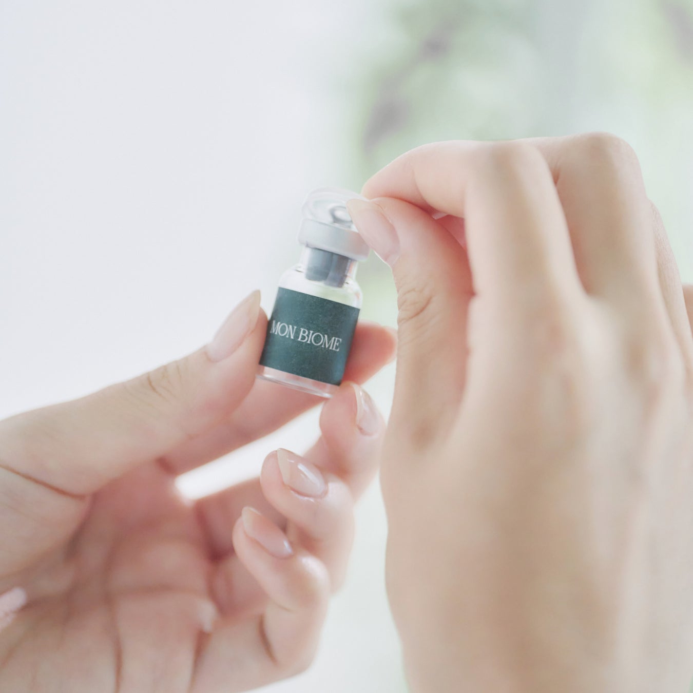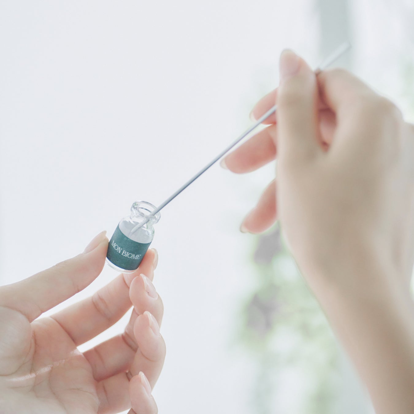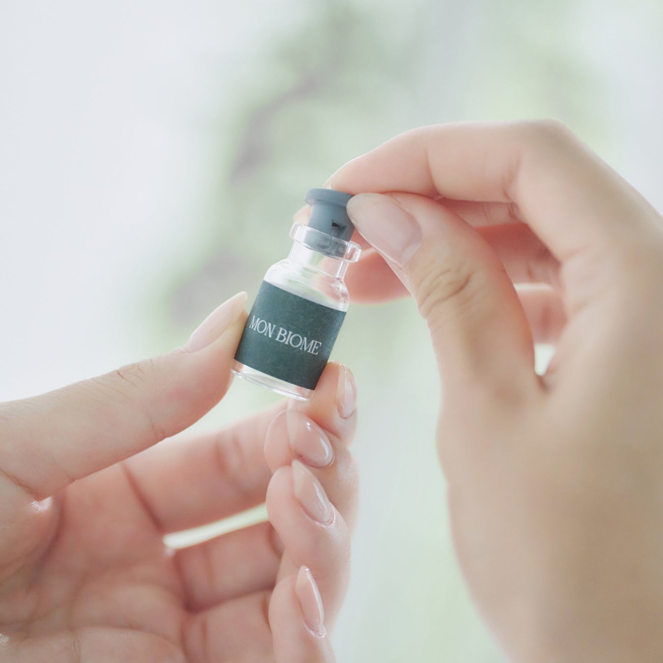 モンビオームは、お客様ご自身の「美肌菌」から生まれるパーソナライズ美容液です。