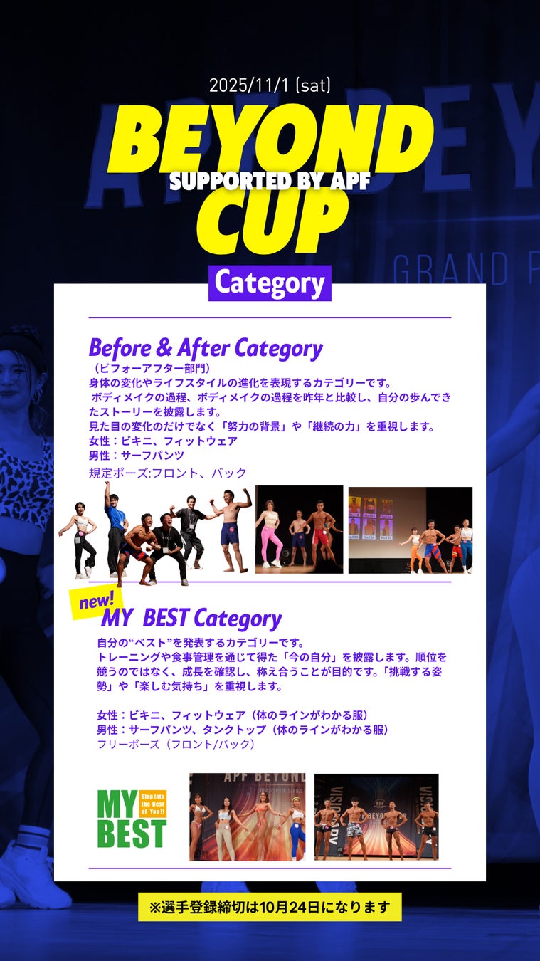APF公式サイトにて販売開始:https://apf.fitness/contest/apf-beyond-cup-2025/