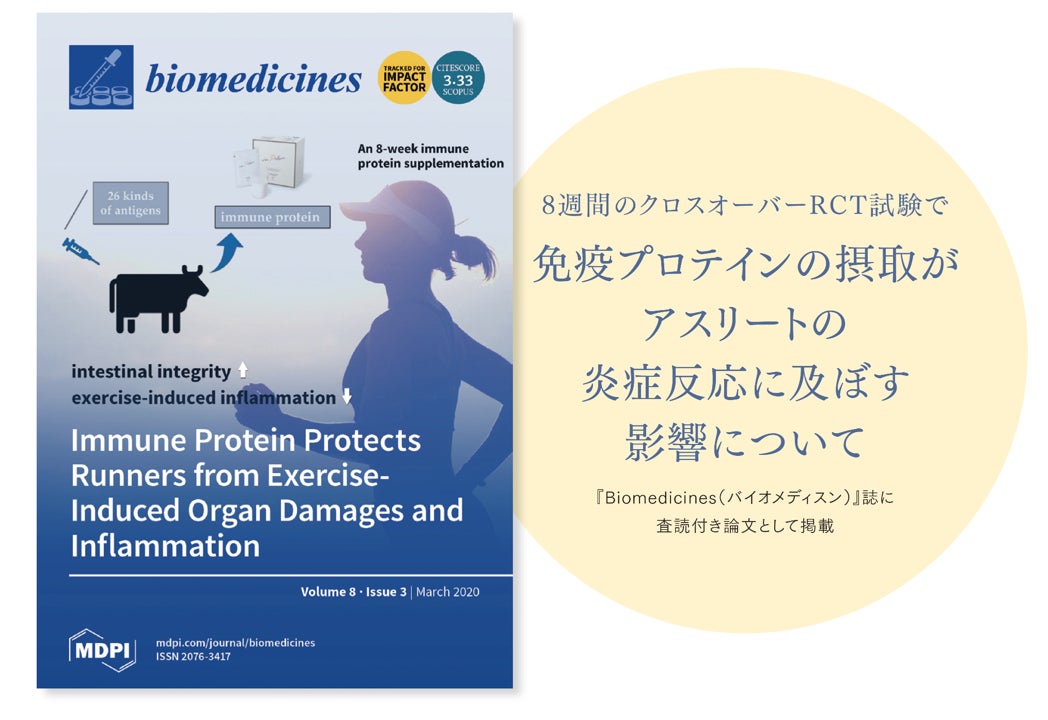 激しい運動は、身体に一時的な負荷を与えます。国際的な医学専門誌『Biomedicines』に掲載されたランナーを対象とした研究では、免疫プロテインを継続的に摂取したグループにおいて、運動によって生じる腎機能(尿濃縮力)の一時的な変化や、炎症性サイトカイン(TNF-α)および腸管へのダメージ指標(I-FABP)の変化に関するデータが取得されました。