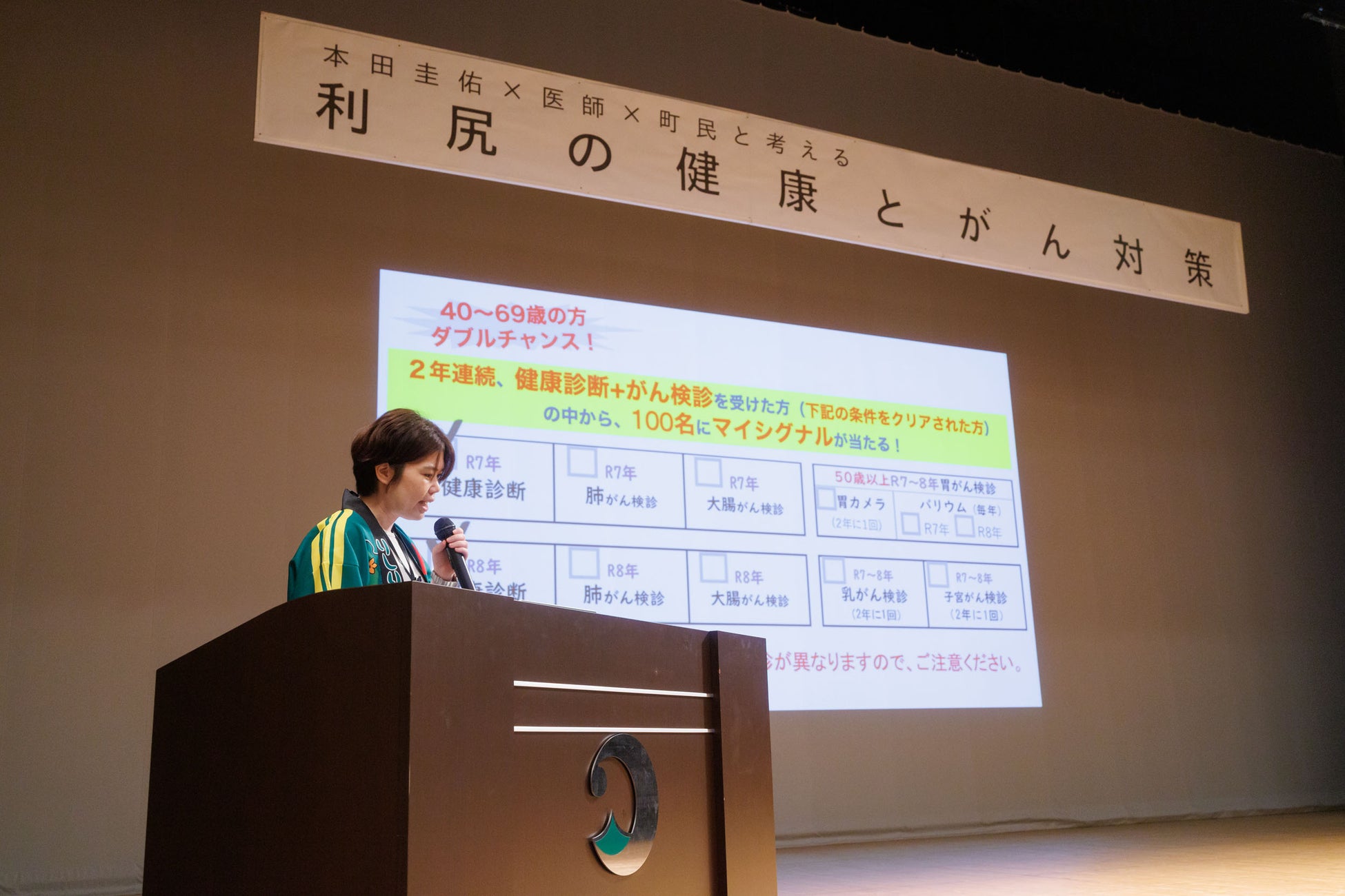 「利尻の健康とがん対策」をテーマに、町民×医師×本田圭佑さんによるトークセッションを行いました。