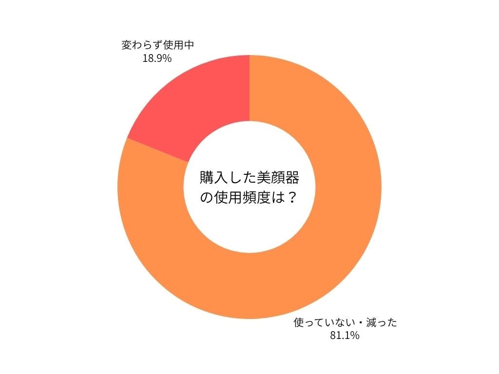 美容機器の購入経験がある方の中で、「購入後の使用頻度は?」という質問に対し、実に81%以上の方が「今は使っていない」「使う頻度が大きく減った」と回答しています。