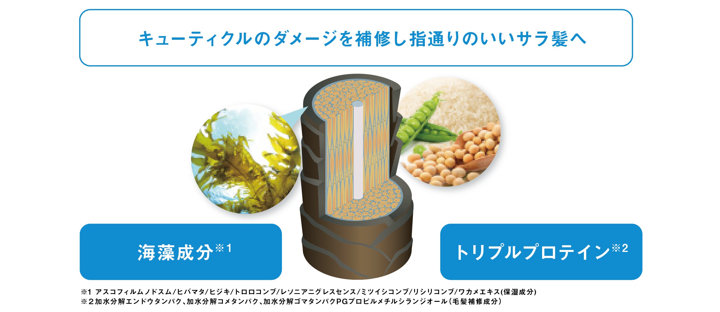 髪のダメージケア成分「海藻成分※3」「トリプルプロテイン※4」を配合。
