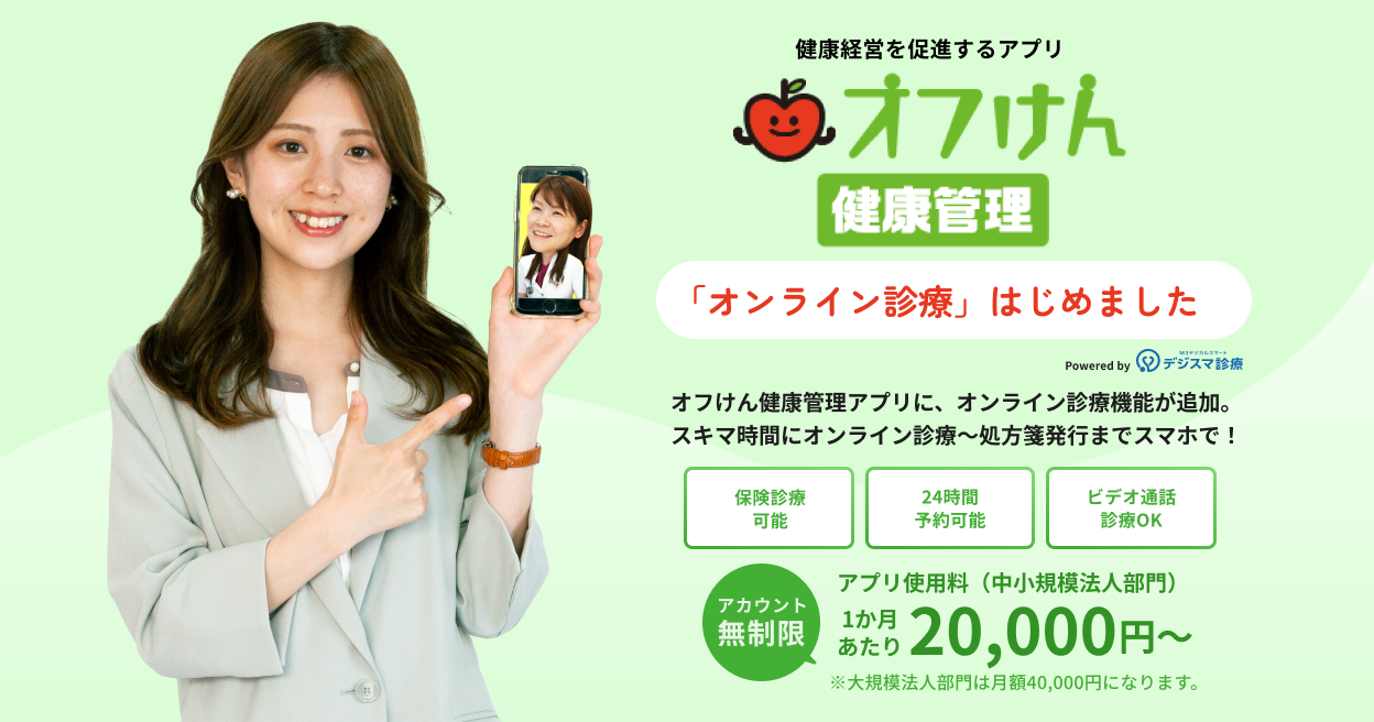 「オフけん 健康管理アプリ」の新機能「オンライン診療」で、いつでも・どこでも提携医師の診療が可能に。