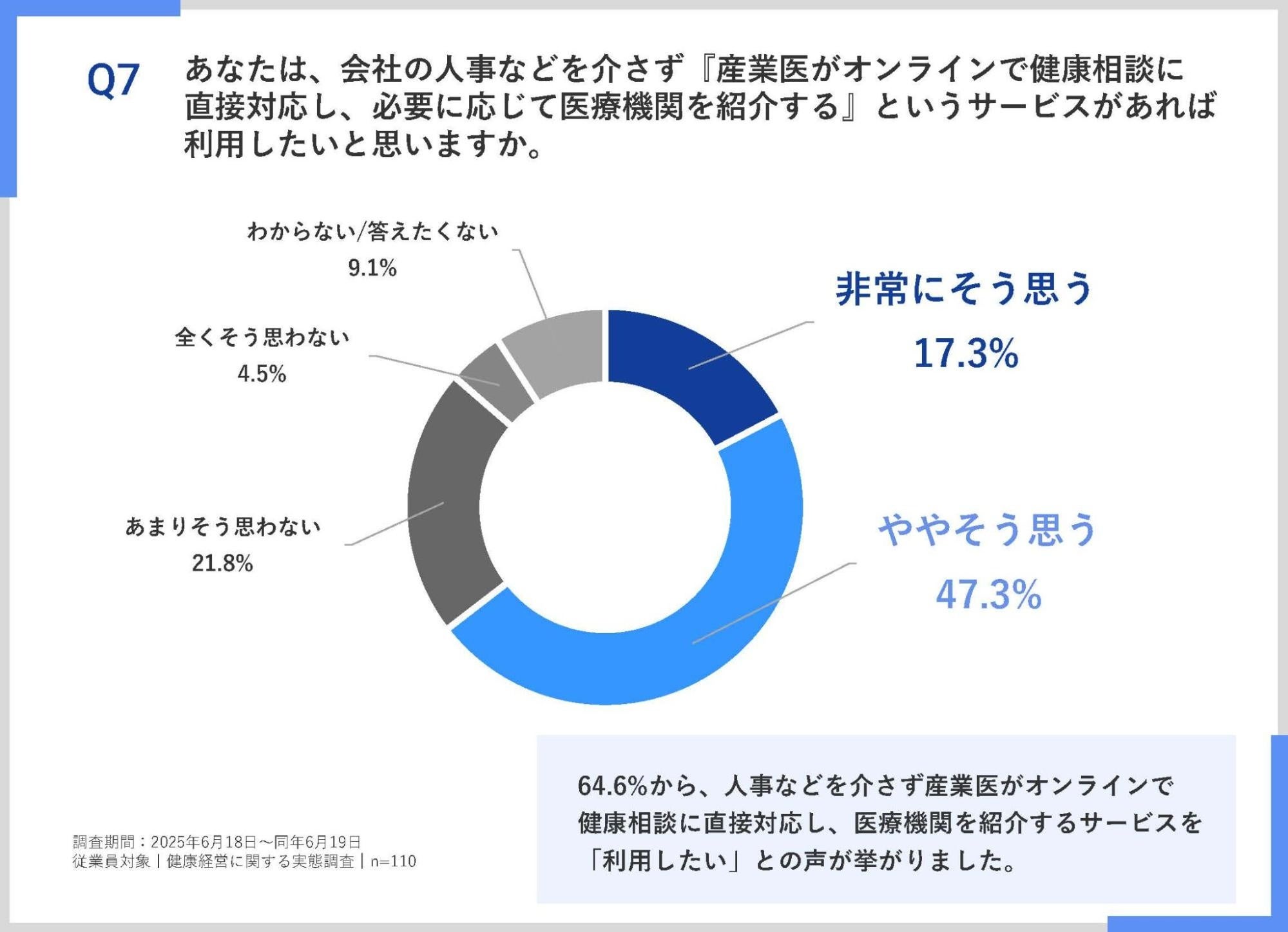 健康診断「有所見」でも2割が放置|6割が企業の健康サポートを希望、オンライン相談に高い関心