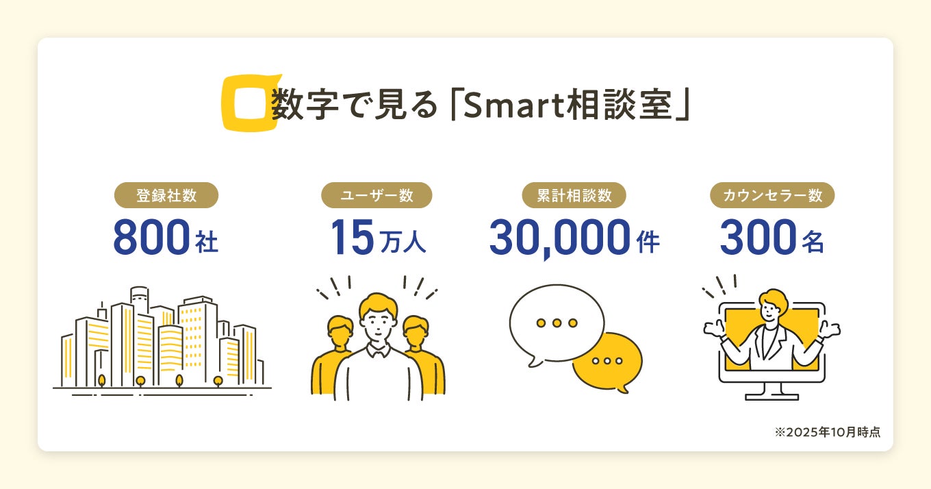 *1:「社外相談窓口サービス『Smart相談室』が、日本の人事部『HRアワード2025』プロフェッショナル部門【組織変革・開発部門】 最優秀賞を受賞」https://smart-sou.co.jp/news/20251017