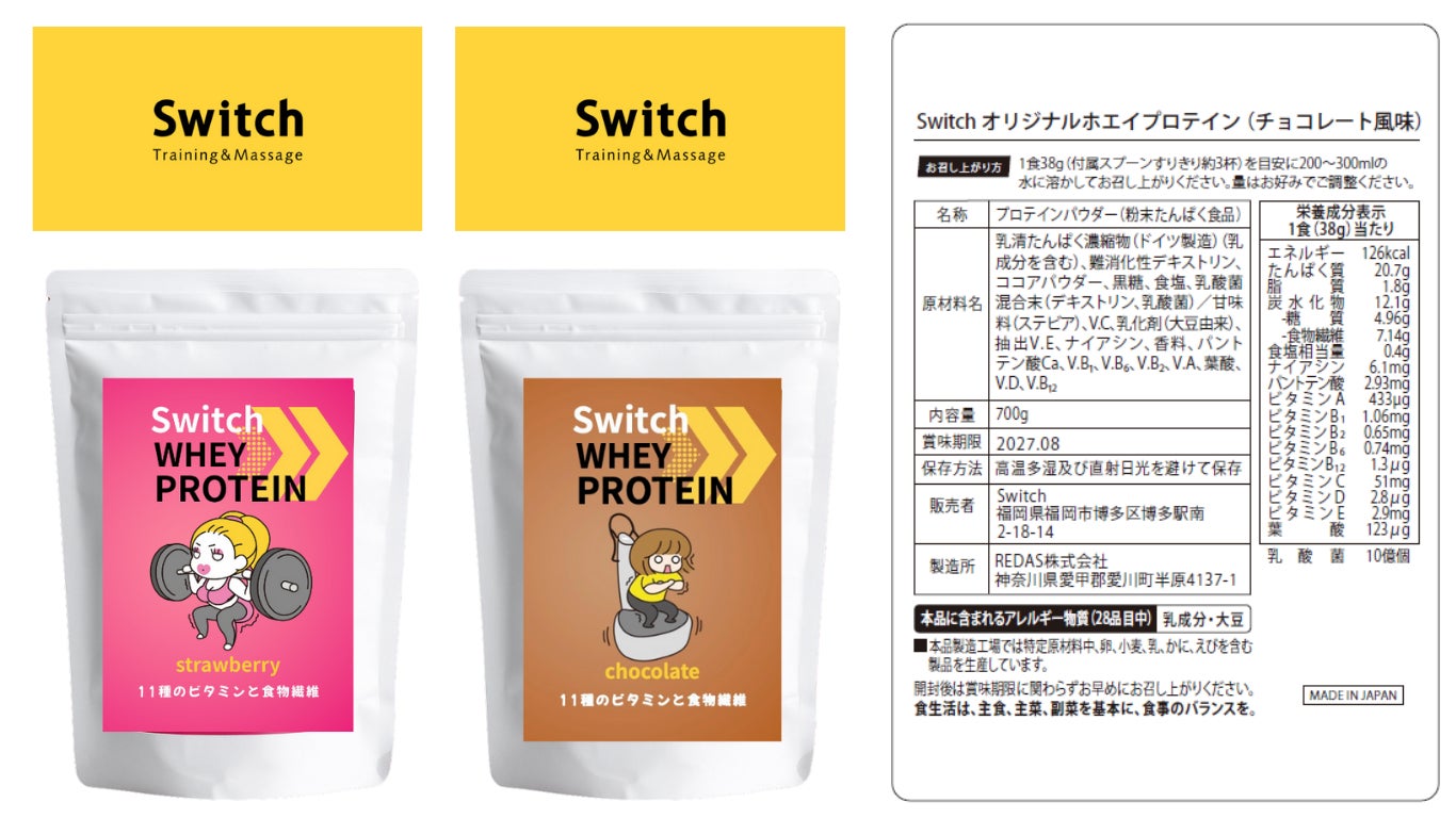 福岡市で博多店と春吉店を運営する パーソナルトレーニングジム「Switch」(代表:原田)は、ジムの現場で得たお客様の声を反映し、「美味しく続けられるホエイプロテイン」 を開発しました。