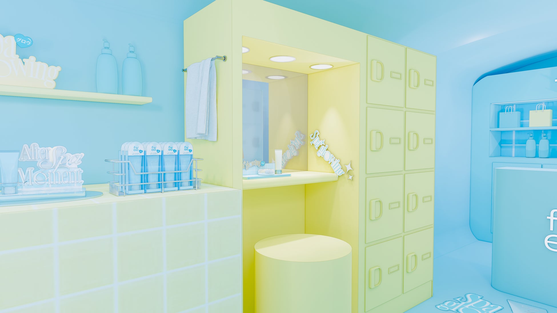 1階では、新商品の“湯上がりのようなツヤ肌”を叶える下地「スパグロウ」の世界観を体感できるエリアを、2階では、ブランドのベストセラー商品を自由にタッチアップできる空間をご用意しています。