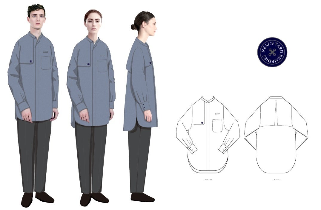 今回目指したのは、ブランドの原点を改めて体現し新たな一歩となるユニフォームデザインです。健康と美容、自然の恵みが心身に及ぼす作用、イギリス文化に根付く自然と衣服の関わりにも想いを巡らせました。ディテールや生地原料、風合い、カッティングを一つ一つ丁寧に重ね、ニールズヤードらしい1着を追求しました。この機会をいただけたことを光栄に思い、日本上陸40周年を心よりお祝い申し上げます。(製作/シタテル株式会社、デザイナー/田中氏)