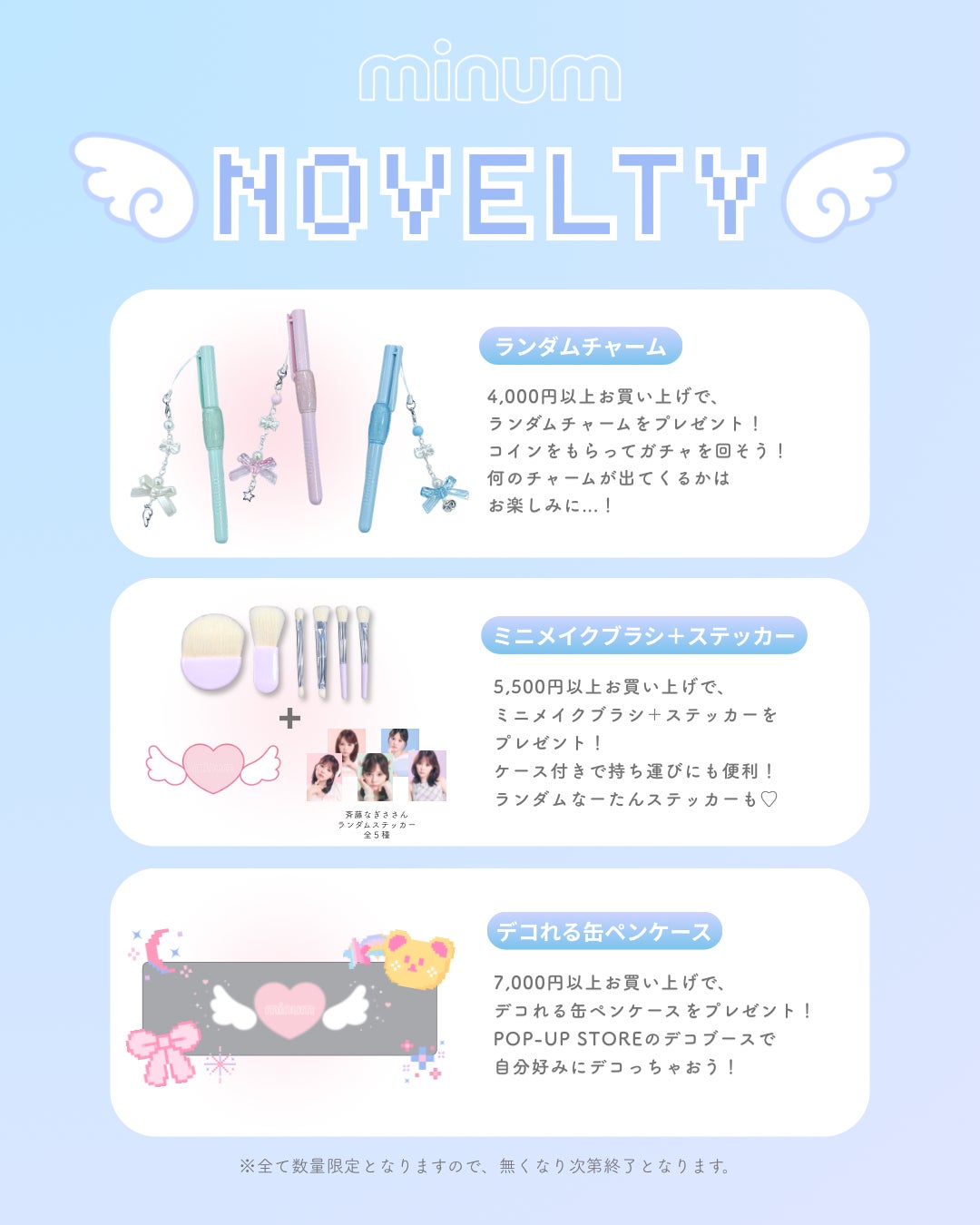 ※ノベルティ・詰め放題アイテムはいずれも数量限定、なくなり次第終了となります。